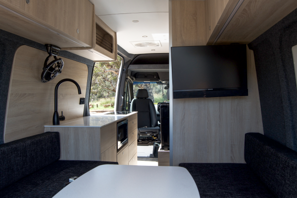 The Frontier is built for couples who want to travel further without giving up comfort. Based on the Mercedes-Benz Sprinter, it combines confident long-distance driving with a fully self-contained interior designed for extended stays, not short stopovers. Inside, you get a large bed, full shower and toilet, spacious living area, and a proper kitchen with a large 190L fridge and smart storage throughout. Off-grid power, solar, climate control, and quality finishes are all included, making it easy to stay comfortable wherever you stop. The Frontier is not about making do. It is about exploring Australia properly, with space, no compromise, and everything already taken care of.
